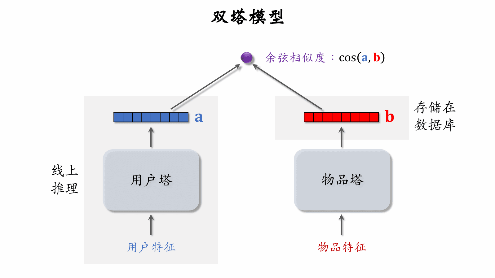 - 物品表征 b 事先储存在向量数据库中,物品塔在线上不做推理。